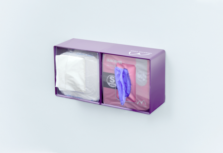 - 専用ディスペンサーを併用し、作業環境の壁面に設置が出来、素早い装着が可能です。